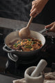 Su diseño atemporal con acabado en esmalte marfil e incrustaciones doradas aporta un toque elegante y sofisticado, perfecto para llevar directamente del fuego a la mesa. Además, es compatible con inducción, gas, vitrocerámica y horno, asegurando máxima versatilidad en tu cocina.